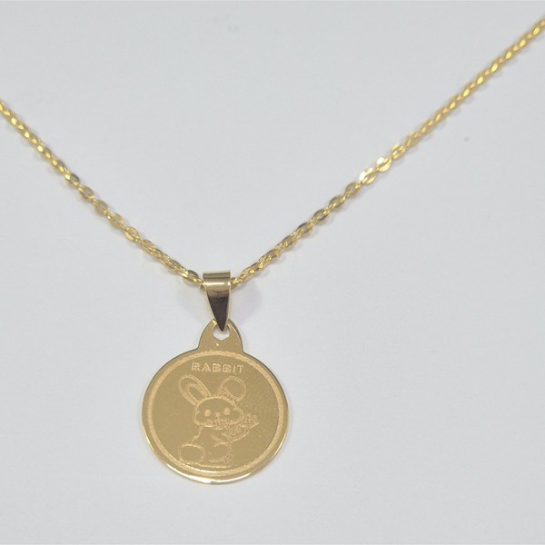 19번: [페리베리] 써지컬스틸 투각토끼 골드 투링목걸이 미아방지 커플 패션 깊은각인, 모줄체인, 1개