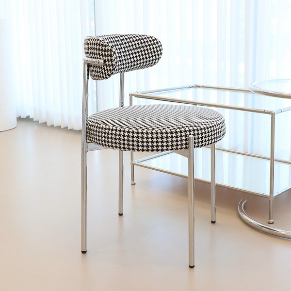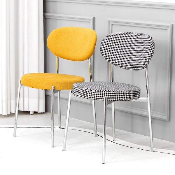 24번: 듀이 크롬 체어 2개 인테리어 디자인 카페 식탁 의자, 체크옐로우