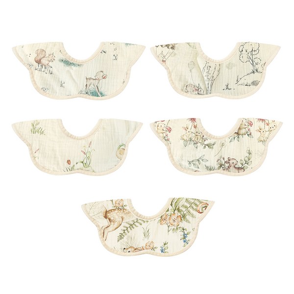 6번: 린다베베 6중 방수 거즈 턱받이 5종 세트 E, 친구 + 생일파티 + 다람쥐 + 숲속친구들 + 꽃사슴, 1개입, 1세트
