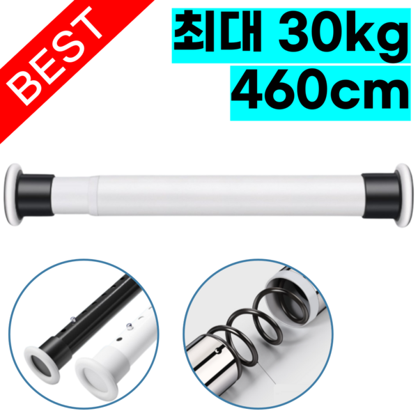 21번: 타이탄 32mm 강력스프링 압축봉 커튼봉 7가지 사이즈 460cm까지, 화이트