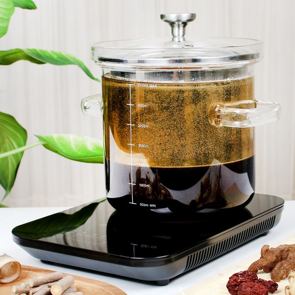20번: [평생AS]국내 최초 통유리 약탕기 3.5리터 대용량 금속 스텐 쇠붙이 전혀 없는 유리약탕기 녹용 홍삼제조기 한약 버섯 한방차 건강차 전기달임기 당귀 감초 도라지 추출기