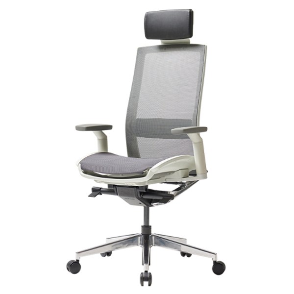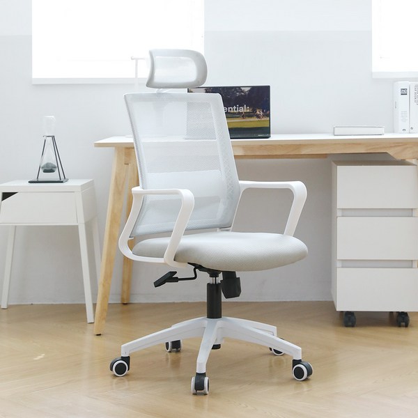 4번: Kurua 라텍스 사무용 메쉬의자 의자 화이트+그레이, 라텍스+헤드레스트/팔조절