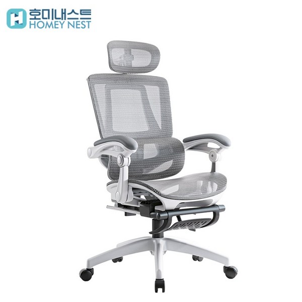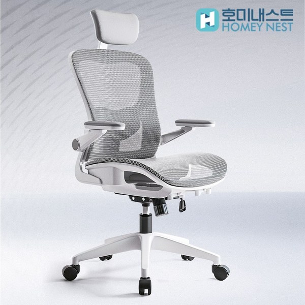14번: HOMEY NEST 풀메쉬 인체공학 요추보호 사무실 컴퓨터의자 학생용 조절식 틸팅기능 등받이조절 체어 HN-OC908, 화이트