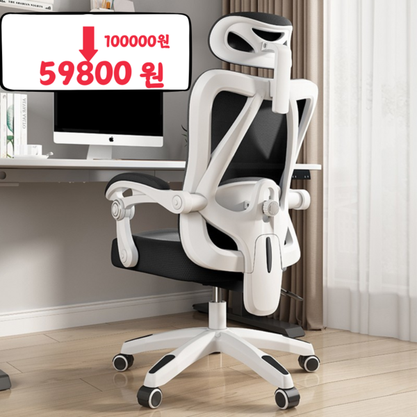 21번: 게이밍의자 컴퓨터 공부 사무용 메쉬의자 (리프트 시트), 화이트+블랙