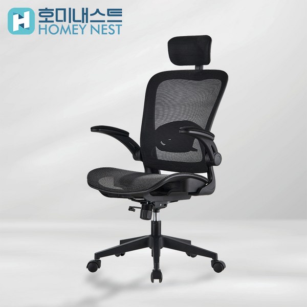 8번: HOMEY NEST 메쉬 게이밍 컴퓨터의자 승강가능 팔걸이 공간활용 사무용 허리 편한 학생 책상 HN-OC203W, 블랙