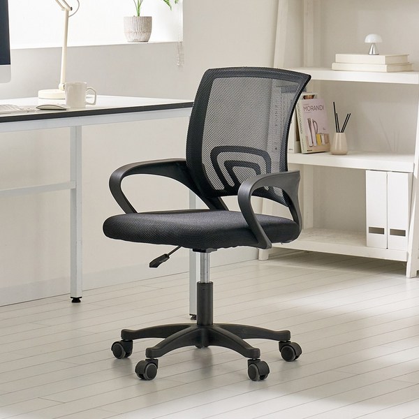 7번: 메쉬요추 사무실 공부 편한 학생 컴퓨터 회의용 책상 메쉬 사무용 의자, 블랙