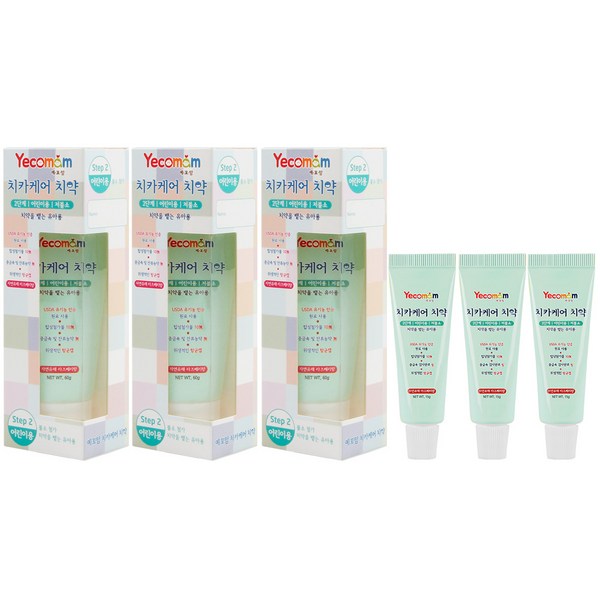24번: 예꼬맘 치카케어 2단계 어린이용 저불소 치약 60g + 미니 치약 15g, 3세트