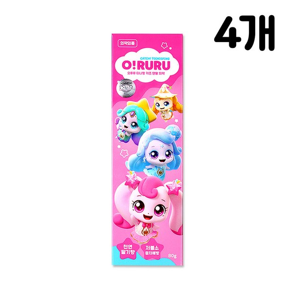 16번: 캐치티니핑 O!RURU 티니핑 키즈 치약 80g 천연딸기향 저불소 충치예방, 4개