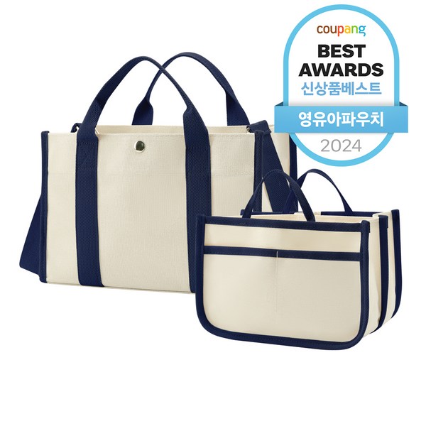 2번: 애드에딧 유아용 모네 캔버스 기저귀 가방 + 이너백 세트, navy
