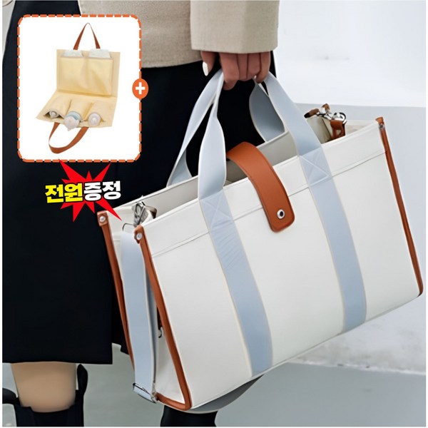 21번: 휴다온 국민 캔버스 기저귀가방 (유모차걸이+크로스백 끈 포함), 아이보리