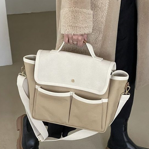16번: 이큐나라 기저귀가방 다용도 다기능 크로스겸용 숄더백 캔버스, 1개, 베이지