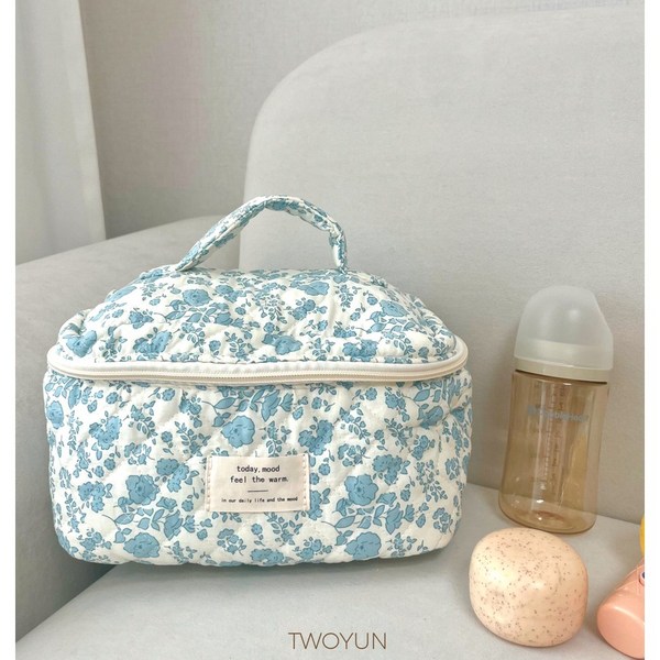 29번: 투윤 누빔 파우치 기저귀 미니 가방 마실백, 블루플라워