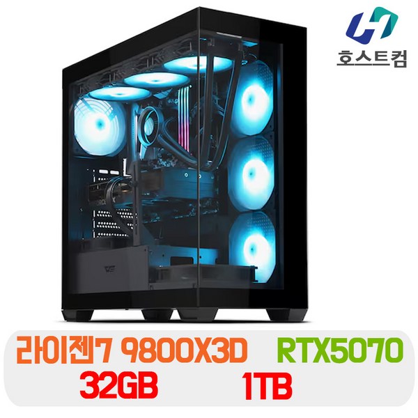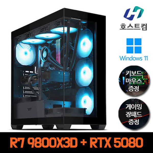 20번: 호스트컴 AMD 라이젠 게이밍 컴퓨터 윈도우 정품 데스크탑 조립 PC 본체, R7 9800X3D + RTX 5080, WIN11 Home, 1TB, 32GB, 블랙
