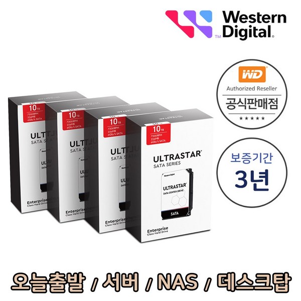 27번: [WD공식총판점] Ultrastar HC330 10TB WUS721010ALE6L4 4PACK 패키지 10TBx4 40TB 서버 NAS 데스크탑 하드디스크 (10테라 4개묶음)