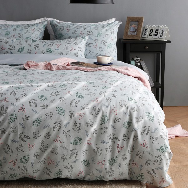 17번: 무늬 고밀도 워싱 순면 이불커버 플라워 양면커버 침구 싱글 슈퍼싱글 더블 퀸 킹 라지킹, 그린 꽃