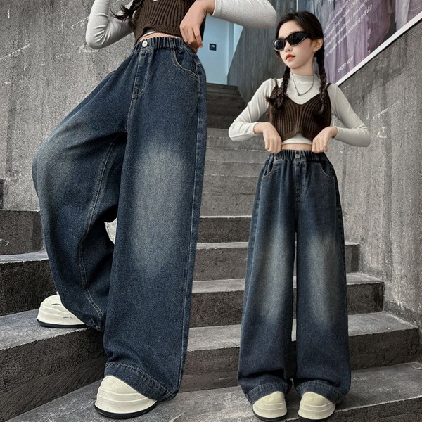 28번: 초등생 주니어 밴딩바지 여아 와이드핏 청팬츠