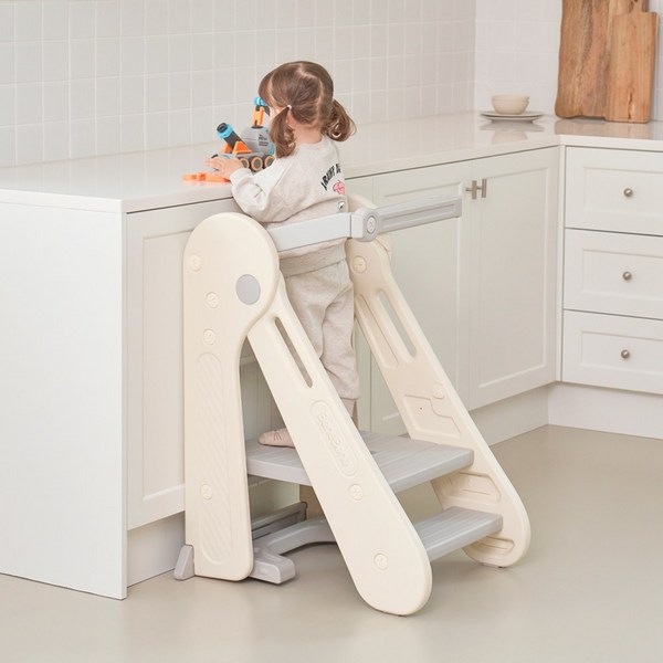 22번: 토몽 러닝타워 키친헬퍼 유아 접이식 디딤대 멀티 안전가드 접이식 높이조절 사다리 2단 3단