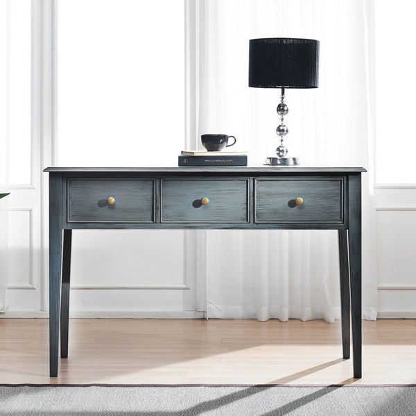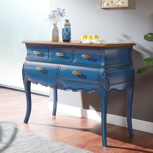 10번: 앤틱 원목 콘솔 가구 거실 침실 서랍장 수납 장식장 진열장 유럽 인테리어 협탁 고풍, 화물택배로 이관 시 배송비가 발생할 수 있습니다., LZ011블루그린2단