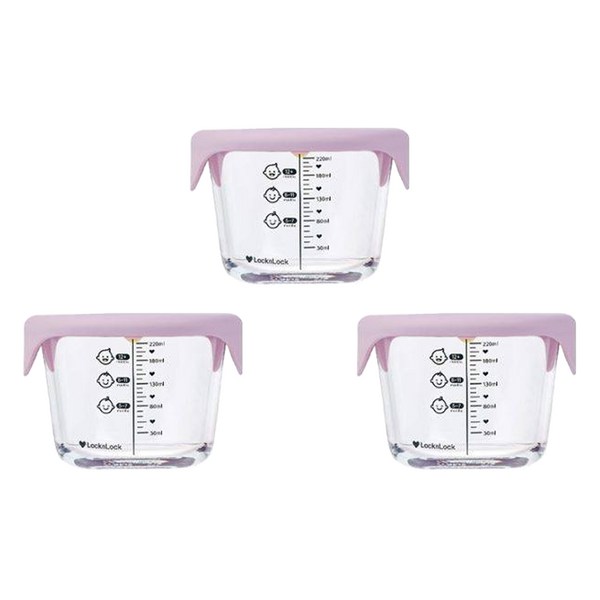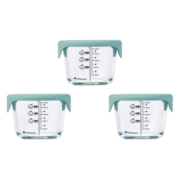 15번: 글라스락 베이비 눈금 이유식용기 대용량 사면결착캡, 혼합색상, 3개, 270ml