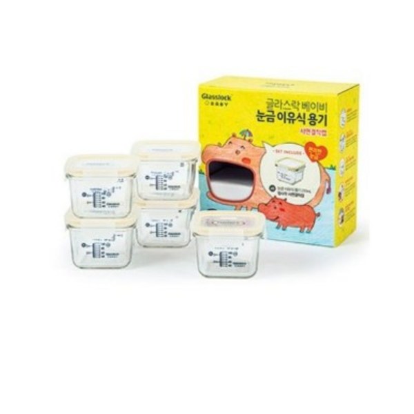 13번: 글라스락 베이비 눈금 이유식 용기, 210ml, 옐로우, 5개