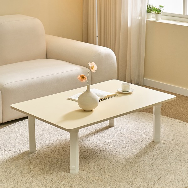 19번: 아이캔컴퍼니 국내생산 E0 LPM 4단 높이조절 베이직 접이식 테이블 900, 크림베이지