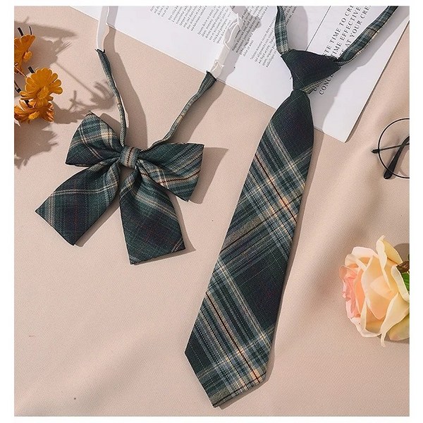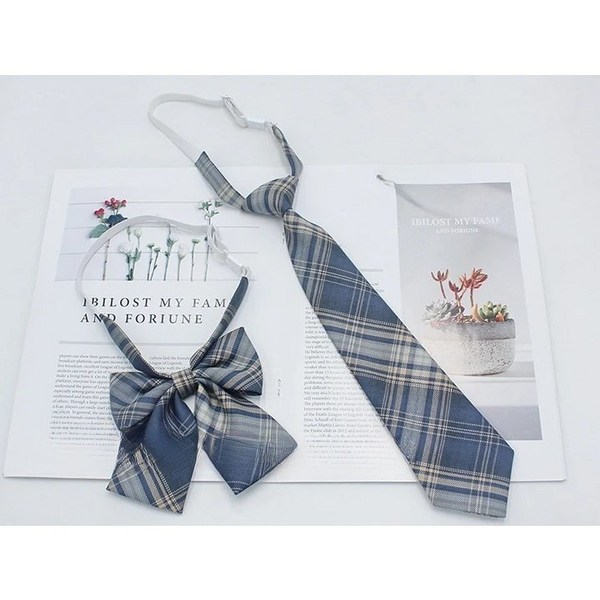 27번: ALLSUKI 체크 스쿨룩 교복 넥타이 & 리본 넥타이 세트