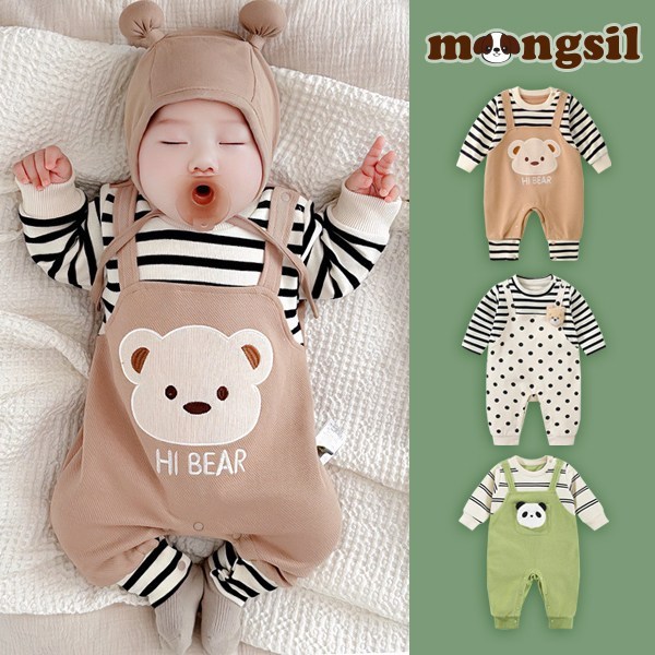 3번: [당일발송] 아기 베이비 봄 가을 옷 긴팔 티셔츠 멜빵바지 상하복 세트 바디수트 외출복