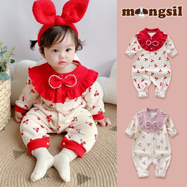 17번: 몽실이 리본장식 체리 긴팔 우주복 유아 여아 외출복 봄 가을 바디수트