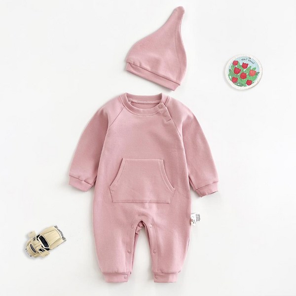 14번: 아기 유아 신생아 베이비 바디슈트 모자 세트 긴팔 내복 내의 실내복 우주복 외출복