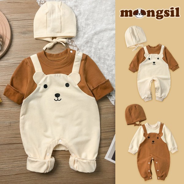 7번: 몽실이 곰돌이멜빵 우주복 보넷세트 남아 여아 유아 외출복 보넷 간절기 봄 가을 백일 선물