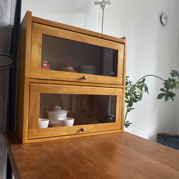 24번: 홈카페수납장 그릇장 찬장 일본식 원목 부엌상부장 정리함, 허니40타입2겹