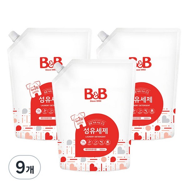 8번: 비앤비 섬유세제 베이비파우더향 리필, 1.5L, 9개