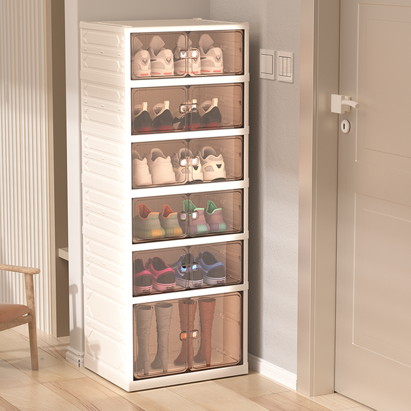18번: Paradoma현관용 심플 투명 신발장 정리 수납 다층 접이식 방진 조립 필요 없음, 6단, 무화과 반동