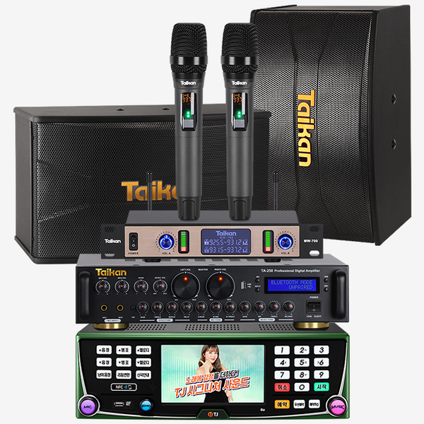 28번: 타이칸 [4종세트] 10인치 노래방스피커 업소용 노래방기기 가정용 노래방기계 TJ티제이B2노래반주기 노래방앰프 무선마이크 풀세트 (4종=스피커+티제이B2반주기+앰프+무선마이크), (4종세트) 10인치스피커+B2반주기+앰프+무선마이크