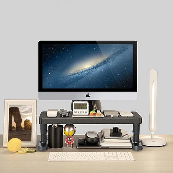 28번: NLBUU 서랍형 모니터 받침대 높이 각도 조절 가능 듀얼 선반 모니터 거치대 1개, Black