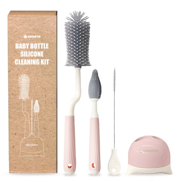 9번: 코코스토 실리콘 젖병 세척솔 브러쉬 세트, 핑크, 1세트