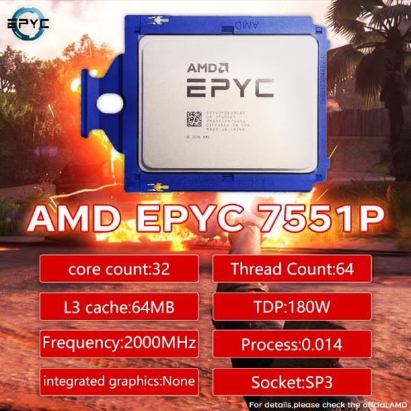 3번: AMD EPYC 7551P 2.0 GHz 32 코어 64 스레드 CPU 180W PS755PBDVIHAF 소켓 SP3 쿨러 없음 신제품