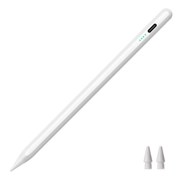 12번: HOU 아이패드 호환 펜슬 애플 펜슬 기능키 숨겨진 Type-C 충전포트 터치펜 아이패드 프로11/12.9/13인치 에어6/5/4세대 미니5/6세대 아이패드 10/9/8세대, 1개, 화이트