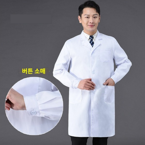 3번: 에덴스톨 의사가운 약국 실습복 실험실 옷 남녀공용 프리미엄 코튼 버튼 슬리브