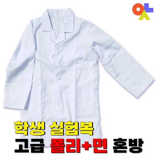 19번: 어린이실험복 학생 고급실험가운 의사가운 lab coat 단체복 과학실 실험실 안전실험 면혼방 35% 유아부터 성인까지