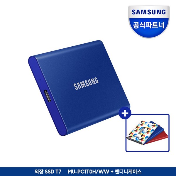 22번: 삼성전자 삼성 외장SSD T7 1TB 외장하드 1테라 USB3.2 Gen.2 Type-C MU-PC1T0 공식인증 (정품) + 더스트백, 블루, MU-PC1T0H/WW