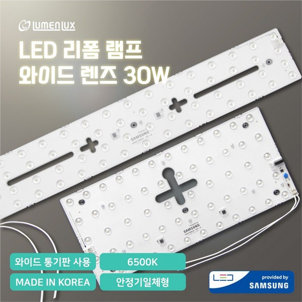10번: 루멘룩스 LED 모듈 리폼램프 와이드 렌즈형 30W 거실등 주방등 방등 안정기일체형 (국내생산), 방등(403x180x12), 6500K(주광색_흰빛), 1개