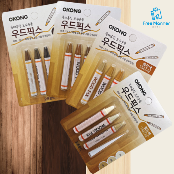 17번: 가구 흠집 보수제 6종 세트 목재 스크래치 메꾸미 마루 바닥 보수 펜슬 우드 찍힘 자국 나무 틈새 보수용품 스틱 필러 퍼티 픽스, 1세트, R89110A(연한계열색상 6개 세트