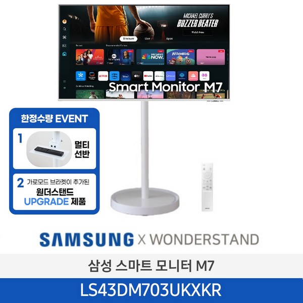 11번: 삼성 M7 UHD 43인치 스마트 모니터 + 원더스탠드 거치대 화이트 패키지 피벗기능 멀티선반 업그레이드 삼텐 디지털사이니지 DID, LS43DM703 + 원더스탠드 (화이트), 109cm