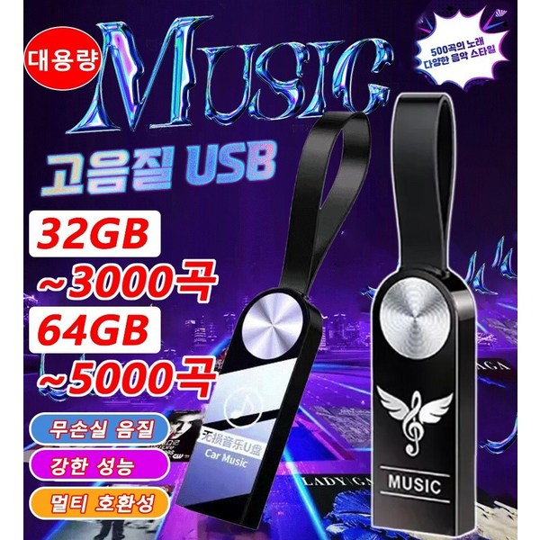 5번: 차량용 고음질 USB 무손실 음질 2개 3000곡/5000곡/강한 성능/멀티 호환성/대용량/고품질