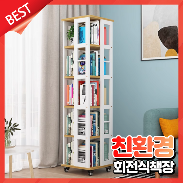6번: 반석가구 원목 회전책장 원목 책꽂이 낮은 서재인테리어 전면책장 거실 2단 3단 4단, A.화이트프레임+오크, 6단