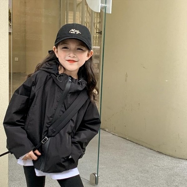 6번: 여아코트 가을옷 남녀공용 바람막이 주니어 솔리드 후드코트 MD161