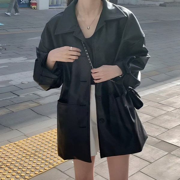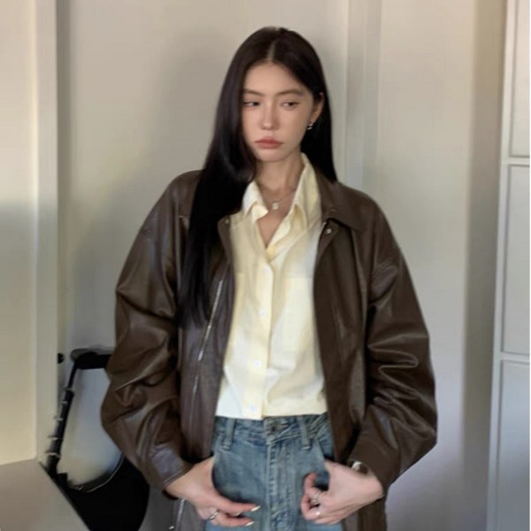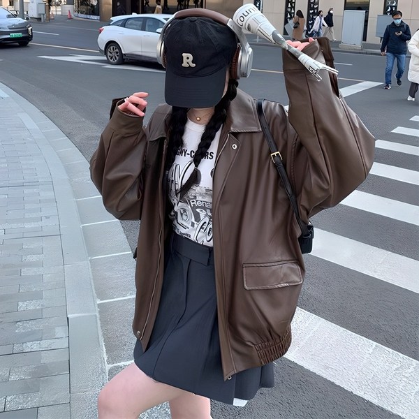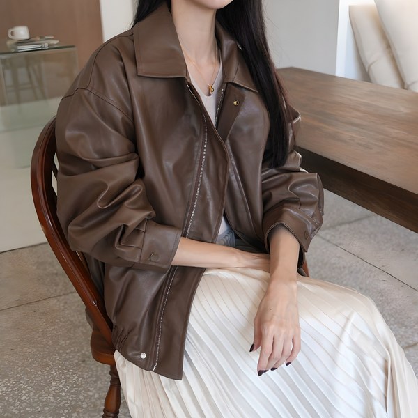 8번: Sorpci 여성 오버핏 가죽자켓 빅사이즈 클래식 레더자켓 봄 가을