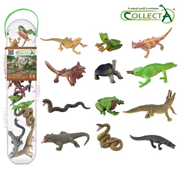 24번: 컬렉타 미니 파충류 양서류 피규어 12종 세트, 1세트