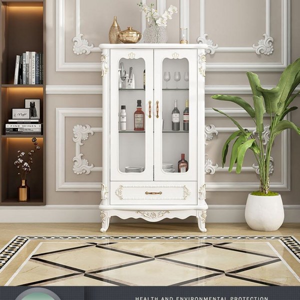 22번: 위스키 보관함 양주 진열장 엔틱 장식장 술장 북유럽 그릇장, 양문형 화이트 (골드)